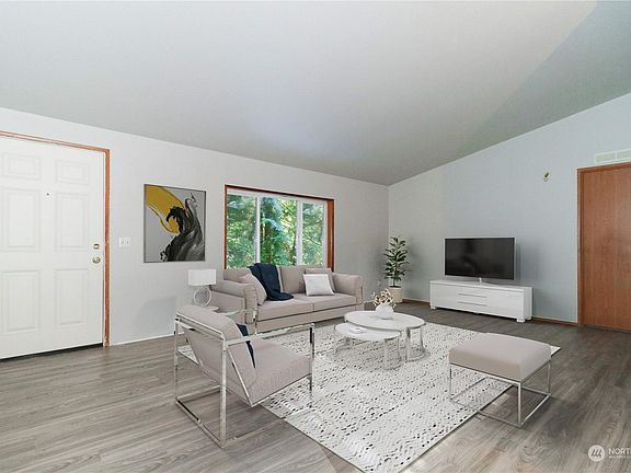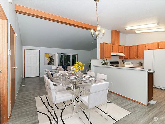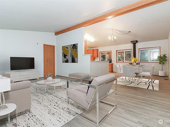 Beautiful, private, serene setting on wooded, 1 acre lot just minutes from Mill Creek town center. Close in privacy! Several large outbuildings with lots of workshop space and tons of storage. Lots of room for a home business. Freshly painted, brand new flooring, spacious, open floor plan with cozy wood stove. Large living room opens to the sunny dining room and kitchen. There are 2 primary bedrooms, one on each side of the home and each with their own bathroom. 3-car covered carport and lots of additional off-street parking. Pets okay on case-by-case basis with additional deposit. Don't miss out on this one!