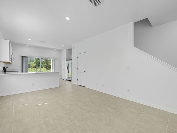 Step into a bright, open-concept living space featuring a gourmet kitchen with quartz countertops, stainless steel appliances, and an elegant design ideal for entertaining. The kitchen is smartly positioned at the rear of the home, creating a welcoming flow to the spacious living area and private lanai perfect for relaxing or enjoying your morning coffee.