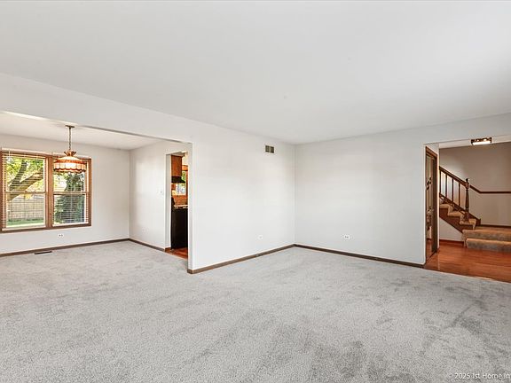 Welcome Home! This inviting 4-bedroom, 2.5-bath Tinley Park home offers the perfect blend of comfort, space, and charm. The main level features a welcoming living room and a separate dining room ideal for gatherings, along with an eat-in kitchen that boasts generous counter space and two pantry closets for easy organization. A spacious great room with cathedral ceilings and rustic wooden beams adds character and warmth. This beautiful room has hardwood floors and features a brick accent wall with a wood-burning fireplace. Upstairs, you'll find four large bedrooms and two full baths, including a primary suite with double closets. A rare 21' x 10' walk-in attic provides incredible storage. The full finished basement is a wonderful extension of the home - perfect for movie nights, game days, or family gatherings. There's also a separate room ideal for a quiet home office, workout area, or playroom. Outside, enjoy your large fenced-in backyard with plenty of room to play, garden, or simply relax - you can even watch the holiday fireworks from the comfort of your own yard! With fresh paint throughout and brand-new carpet (2025), this home is move-in ready and waiting for you to make it your own. Recent updates include a new sump pump (2025), a new basement window (2025), new furnace (2023), A/C is estimated to be 6-10 years old. Garage roof (2019), house roof (2015). This is the one you've been looking for so book your showing today!