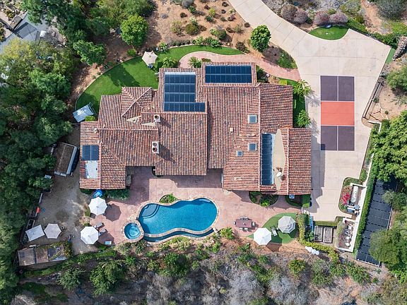Set on 2.51 elevated view acres in the exclusive Covenant of Rancho Santa Fe, this custom-built 2009 estate has been recently refreshed and showcases 4,523 sq. ft. of beautifully scaled single-level living. Designed for both grand entertaining and everyday enjoyment, the home features soaring ceilings, an open flowing floor plan, and seamless indoor/outdoor living. The great room, with its stone-clad fireplace, lift-and-slide doors, and beverage bar, opens to the chef’s kitchen complete with a sun-filled breakfast area, copper sink, and bar seating. Additional highlights include a formal dining room, artisan-crafted office/library, secondary office, and a powder room. The luxurious primary suite offers a cozy fireplace, spa-inspired bath, and a generous custom-appointed dressing room. Three additional bedroom suites provide comfort for family or guests. Outdoor living is unrivaled, with a magnificent covered living/dining room and fireplace overlooking the resort-style pool and spa, outdoor shower, and expansive lounge areas—perfect for taking in the sweeping, peaceful views. Additional features include: wood and travertine flooring, whole-house and pool solar, raised-bed vegetable gardens, extensive chicken coop housing, gated entry and cul-de-sac location, garaging for 3 cars. Close to equestrian trails, the RSF Village, Golf and Tennis Clubs, and award-winning Roger Rowe schools, this estate blends elegance, comfort, and convenience in one of Rancho Santa Fe’s most coveted settings. Set on 2.51 elevated view acres in the exclusive Covenant of Rancho Santa Fe, this custom-built 2009 estate has been recently refreshed and showcases 4,523 sq. ft. of beautifully scaled single-level living. Designed for both grand entertaining and everyday enjoyment, the home features soaring ceilings, an open flowing floor plan, and seamless indoor/outdoor living. The great room, with its stone-clad fireplace, lift-and-slide doors, and beverage bar, opens to the chef’s kitchen complete with a sun-filled breakfast area, copper sink, and bar seating. Additional highlights include a formal dining room, artisan-crafted office/library, secondary office, and a powder room. The luxurious primary suite offers a cozy fireplace, spa-inspired bath, and a generous custom-appointed dressing room. Three additional bedroom suites provide comfort for family or guests. Outdoor living is unrivaled, with a magnificent covered living/dining room and fireplace overlooking the resort-style pool and spa, outdoor shower, and expansive lounge areas—perfect for taking in the sweeping, peaceful views. Additional features include: wood and travertine flooring, whole-house and pool solar, raised-bed vegetable gardens, extensive chicken coop housing, gated entry and cul-de-sac location, garaging for 3 cars. Close to equestrian trails, the RSF Village, Golf and Tennis Clubs, and award-winning Roger Rowe schools, this estate blends elegance, comfort, and convenience in one of Rancho Santa Fe’s most coveted settings.