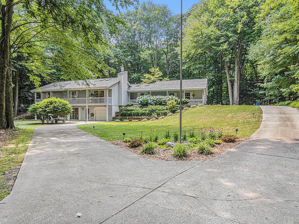 Unseen from the street, this privately perched former 2-unit has a treehouse vibe and offers 2.18 acres along the bike path in SL Schools! Thoughtfully converted and packed with unique features, this single-family home has an excellent set-up for multigenerational living, college commuter, or plug-and-play hosting for out-of-town guests! Complete main level living boasts cathedral ceiling, 6 skylights, opulent baths w/ornate tilework, dedicated laundry room, and more. 2 full kitchens, gas & wood FPs, multiple balconies and patios, 2 furnaces(2021 & 2019) w/humidifiers, irrigation, low-voltage landscape lighting, 2 driveways, 4+ total garage stalls incl. fin. 3-stall w/gas furnace, insulated overhead doors, H/C water, and floor drains! Many inclusions & updates! See list/media for details.