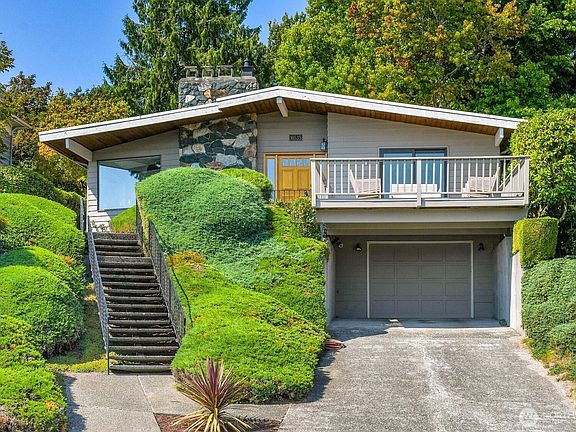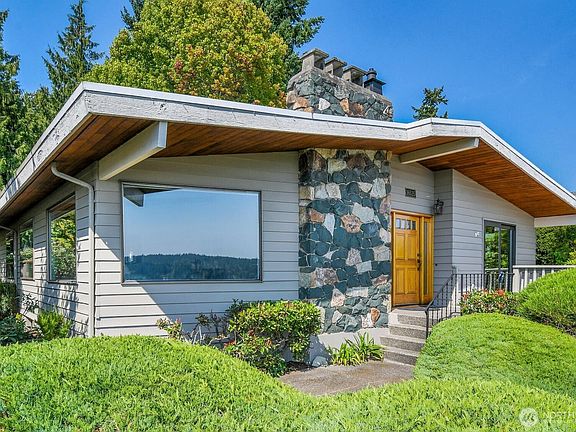 This beautiful mid-century modern, 4 bedroom 3 bath home is deeded into the private, very popular, Sheridan Beach Club. Offering a pool, beach access and park. Situated high above the street this home offers unobstructed views of Lake Washington, Mt. Rainier and the glorious Cascade mountains.The entry introduces beautifully what the home has to offer. The living room has vaulted ceilings, gorgeous beams and walls of windows allowing for tremendous views. Main level has a primary suite, second large bedroom , 3/4 bth, a delightful bonus room overlooking the lake and deck. The gourmet kitchen is all open with an eating area, loads of counter space. Lower level has 2 bdrms, tiled 3/4 bth, an enormous family room and access to the garage.