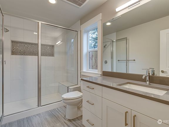 Welcome to Edison Estates in Shoreline. This is THE FINAL AVAILABLE HOME in the community! The Benton, Unit 7, offers a spacious 2,476 square-foot floorplan with 4 bedrooms, 3 baths & 2 car garage. This home features kitchen/dining & great room with gas fireplace on 2nd level, bedroom with 3/4 bath on lower level and primary bedroom with walk-in closet & en-suite bath on 3rd level. Extra features include covered deck with fireplace & pocket office on 2nd level. Quality finishes include white cabinets, quartz counters, full landscaping, fencing, tankless hot water heater, garage door opener with remote, Deako smart switches & more. Registration policy: Buyers to register their Broker. Photos are of Unit 15.
