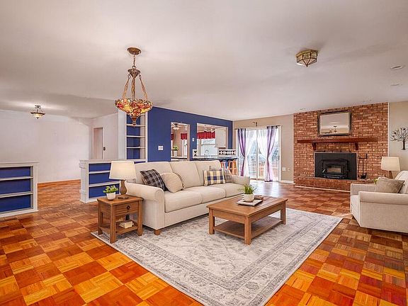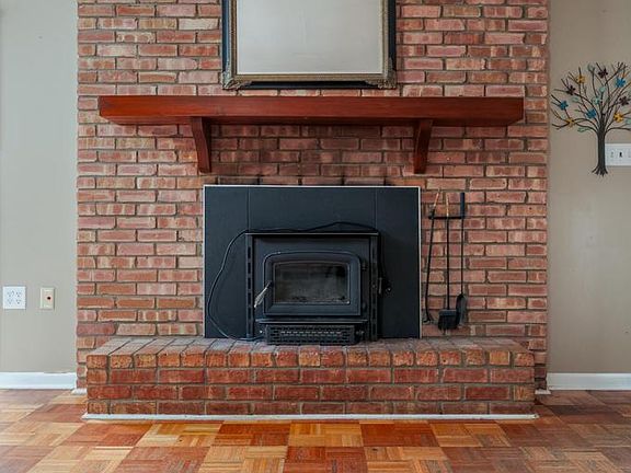This solid brick ranch sits on just under an acre, offering space, privacy, & a beautiful natural setting. The property is surrounded by mature trees & features multiple fruit-bearing trees, a grapevine, & plenty of room to garden, play, or simply relax outdoors. Enjoy the seasons from the deck, or unwind under the gazebo w/views of the tree-lined backyard. Inside, the home features parquet wood flooring, built-in shelving, & a spacious living area centered around a brick fireplace with a wood-burning insert -- perfect for cozy evenings. The open layout provides great potential for personalization & updates, with natural light throughout & convenient single-level living. The lower level offers the ability to expand your living space even further with a dry bar & rec rm ideal for gatherings