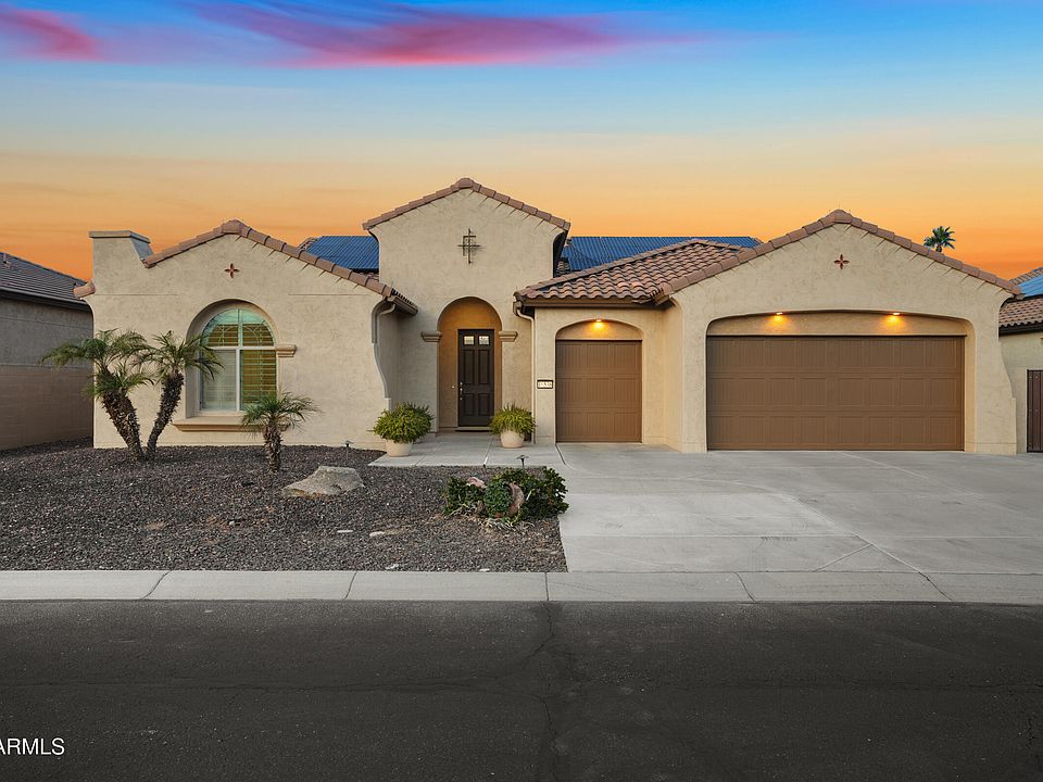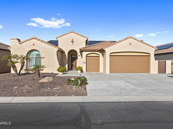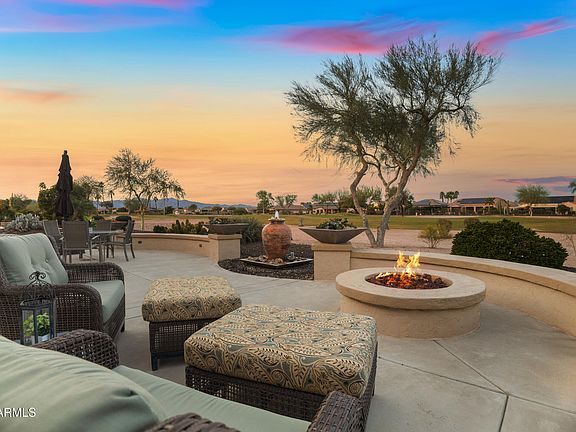 GOLF COURSE VIEW! Experience the best of resort-style living in this stunning single-story PebbleCreek home located on the desirable Tuscany side of the community. Offering 2,363 sq ft, this thoughtfully designed residence features 2 bedrooms both with en suite baths, a dedicated office, 2.5 bathrooms, and a spacious 3-car garage. Enjoy seamless indoor-outdoor living with a large covered patio, fire pit, water feature, and ample seating—all overlooking breathtaking golf course views. Embrace the PebbleCreek lifestyle with world-class amenities including multiple adult pools, state-of-the-art fitness centers, championship golf, pickleball, tennis, bocce ball, and over 100 clubs and organizations to fit every interest.