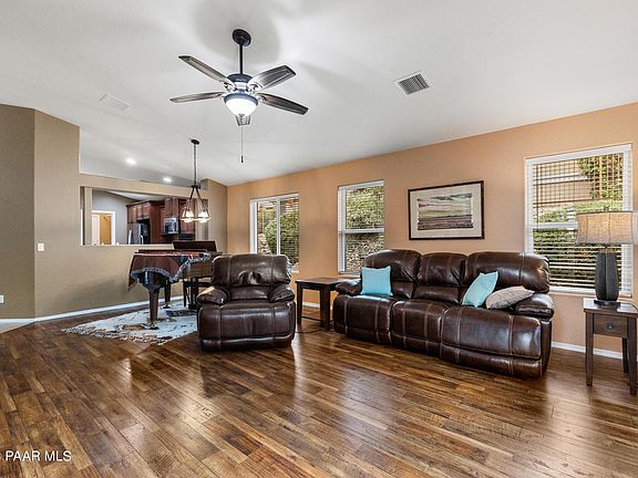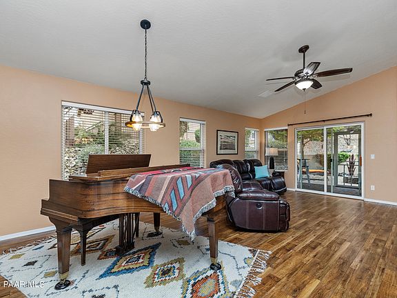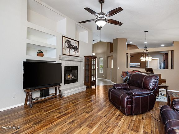 Welcome to your dream home nestled in the serene community of ''The Cottages'' within Prescott Lakes. This property offers a unique blend of tranquility and privacy, situated at the end of a peaceful cul de sac. The heart of the home boasts granite countertops, a center island, and upgraded staggered wood cabinets. The kitchen opens into a large dining area and living room, featuring a warm fireplace and elegant wood floors. Sliding doors provide access to the premium, private outdoor living space Step into your backyard oasis, complete with brick pavers and a charming fire pit. Whether you're entertaining guests or enjoying quiet evenings, this space is perfect for creating lasting memories.The home offers a Primary Bedroom, w remodeled bathrooma a second bedroom, & a versatile den.