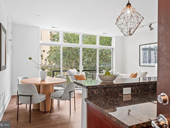 Welcome home to this elegant and modern 2 bedroom, 2 bath residence with secure parking, tucked away in Lot 33 Condominiums, a boutique building in Adams Morgan. The location can’t be beat with tons of parks, restaurants and shopping just steps from your doorstep. Stepping into this open concept home, you immediately notice sunlight streaming in the main living area, which is adorned with floor-to-ceiling windows. The heart of this home is the open chef's kitchen, featuring a premium Viking 4-burner gas stove, granite countertops, and a spacious island perfect for culinary artistry. The island has room for stools allowing guests to talk with you while you host. The spacious living and dining room are the perfect spaces to entertain. A deep storage closet conveniently located in the main living area can store travel gear or holiday decorations. At the rear of the home, the south east exposed primary suite offers a tranquil retreat with an ensuite windowed bathroom, a linen closet, and a generously sized walk-in closet outfitted with Elfa shelving. This bedroom is surrounded by trees, giving you a tree house vibe while creating a ton of privacy. A sunlit second bedroom also boasts an Elfa closet, providing ample storage. The large second bath is tucked away just off the small hallway. This home is completed with a stackable in-unit washer and dryer, secure parking space (just off the garage entry) and a gated garage storage space. The current owners have thoughtfully replaced the majority of windows, installed new Luxury Vinyl Plank floors and freshly painted the entire home allowing you to move right in and start enjoying your newer home. Perfectly positioned, this home is just one block from Harris Teeter, and a short stroll to enjoy the vibrant offerings of Adams Morgan, Mount Pleasant, Dupont, and Logan Circles. Take a picnic just across 16th Street, Meridian Hill Park. Easy commute downtown. The fusion of luxurious living with unrivaled convenience makes this a truly unique opportunity.