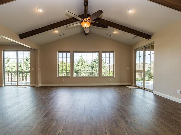 - Interior Features: Fireplace-Gas, Live on One Level, Raised Ceilings 9+ft, Walk-In Closet(s), Beamed Ceiling, Counters-Granite, Garden Tub