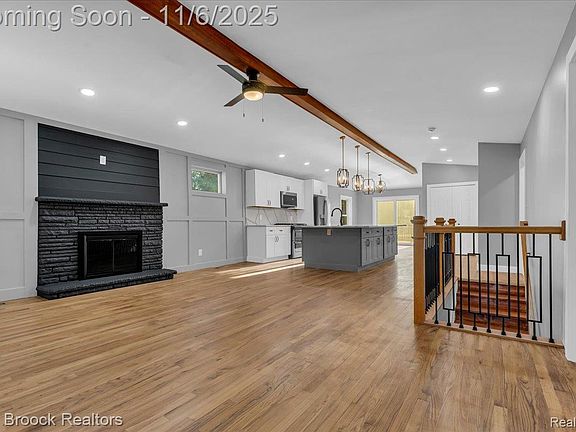 OPEN HOUSE-- SUNDAY Nov-9th 11AM-2PM. Welcome to your beautifully renovated ranch — completely updated from top to bottom! This stunning raised ranch offers 5 bedrooms, 3 full baths, and over 3,000 square feet of finished living space, perfectly situated on 4.01 acres of peaceful privacy. Step inside and be greeted by an inviting open-concept layout. The spacious living room features a natural fireplace and seamlessly connects to the dining area and chef’s kitchen. Enjoy an oversized quartz island with ample seating, soft-close cabinetry, and abundant storage — perfect for gatherings and everyday living. A front-entry mudroom/laundry area provides convenience, while a stylish office with glass French doors offers the perfect work-from-home setup. The main level includes three generous bedrooms, including a tucked-away bedroom off the living area. Don't miss it! The primary suite features a walk-in closet and a beautifully designed ensuite bath. Red Oak hardwood floors flow throughout the main level, adding warmth and elegance. Great natural light throughout. The finished lower level provides even more living space — ideal for entertaining, a family room, or guest quarters — with two additional bedrooms, a walkout to the backyard, and a second laundry hook-up for added flexibility. Step outside to enjoy the 16x30 cedar deck overlooking your private backyard oasis. Major updates include a roof, HVAC system, A/C, and all-new Anderson windows. This home is truly move-in ready — every detail has been thoughtfully updated for modern comfort and style. BATVAI. Bonus: Lot split available!