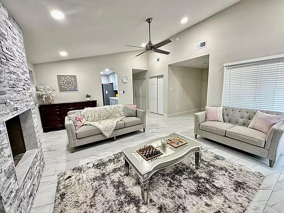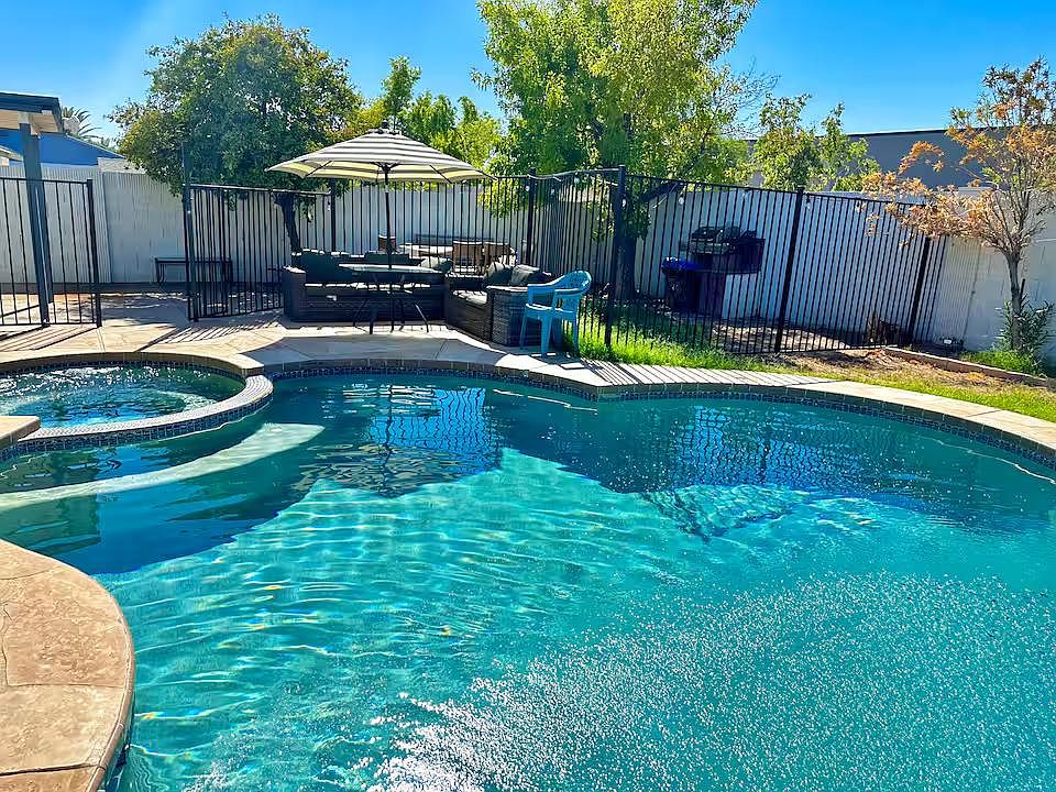 Welcome to your spacious, beautifully furnished 4-bedroom, 2-bathroom home in Mesa! This inviting retreat offers 2 cozy living rooms and a fully equipped modern kitchen, providing plenty of space and comfort for everyone. Enjoy a refreshing dip in the diving pool or relax in the unheated jetted water extension for a touch of luxury.