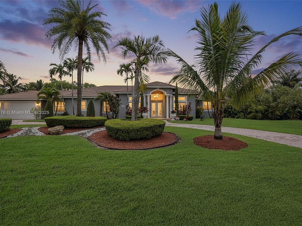 Welcome to this exceptional one-story home in Southwest Ranches, set on a spacious builder’s acre lot. With no HOA restrictions, this property offers excellent flexibility for short or long-term rentals and is currently operating as a successful Airbnb. This 4 bed, 4.5 bath home features soaring ceilings, updated bathrooms, porcelain and tile floors, and a functional split floor plan. The fenced backyard offers 36,207sqft qith canal views with dog run, an 8ft waterfall pool with a new pump, jacuzzi & 1,100 SF covered patio with an outdoor kitchen and fruit trees. Additional features include a 2-car A/C garage, tankless water heater and A/C (2018), and a circular driveway that fits 8–10 cars. Ideal as an investment, vacation home, or the opportunity to redesign and create your dream home