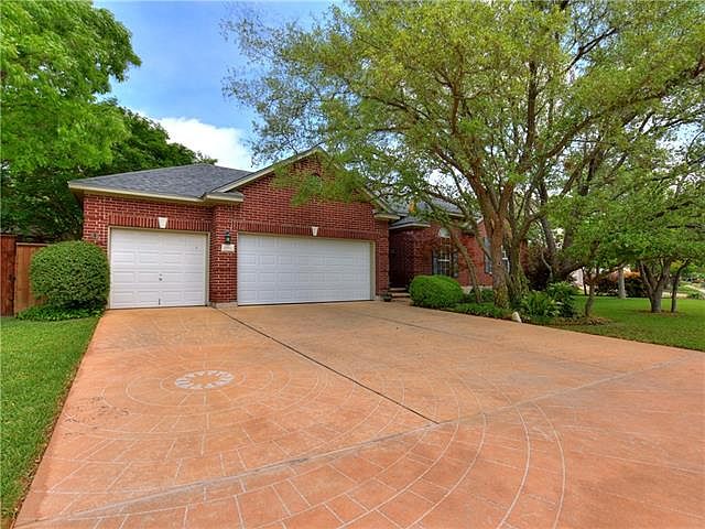 Excellent open living/dining/kitchen floorplan, four beds plus office, secondary master suite, oversized three car garage w/ exterior door to yard. Extensive landscaping has large trees, beautiful ground cover, walkways, waterfall pond, & private back yard space. Personal touches such as concrete designs make this home unique. Beautiful community center w/ fitness area and numerous pools, play areas, walking trails in this neighborhood. Easy access to Tolls, HEB, and schools. Don't miss seeing this home!