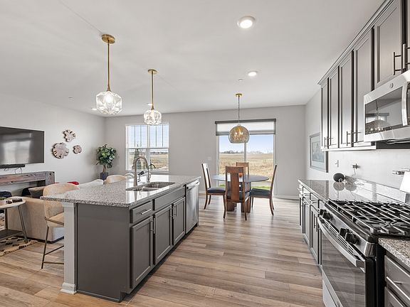 THIS IS THE ONE ALMOST NEW, BUT BETTER! THE PERFECT FLOOR PLAN. 2 BEDROOMS, 2.5 BATHS, 2 CAR GARAGE AND FULL BASEMENT. THE PROPERTY IS LOCATED ON A PREMIUM LOT BACKING UP TO GREEN SPACE, LOCATED IN MUCH SOUGHT AFTER SILO BEND. HOME FEATURES LUXURY VINYL PLANK FLOORING. ALL BATHROOMS HAVE CERAMIC FLOORING. PRIMARY BATH HAS DOUBLE SINKS AND WALK IN SHOWER. kITCHEN HAS 42" GREY CABINETS CROWN MOULDING, SOFT CLOSE DRAWERS, GRANITE COUNTER TOPS, STAINLESS APPLIANCES, CUSTOM LIGHT FIXTURES, AND ALL CUSTOM WINDOW TREATMENTS. YOU WILL FIND THE WASHER AND DRYER ON THE SECOND FLOOR FOR GREAT CONVENIENCE. THE FULL UNFINISHED BASEMENT IS EQUIPPED WITH A WATER SOFTNER SYSTEM. A MUST SEE!!