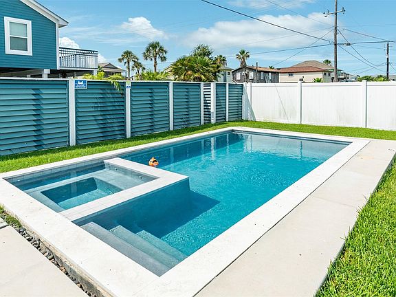 A well-maintained newer home. Sits on a large fully fenced corner lot with a 6' privacy fence and gated driveway. Only a short straight walk or golf cart ride to the beach. Or stay in and enjoy the new heated in-ground pool and hot tub with LED lighting. Three large bedrooms and an open-concept kitchen, living room and dining area. Lower-level covered patio next to the pool. And an upper level porch, including a firepit, offers spectacular sunset views! Come relax and enjoy waterfront living for while! Jamaica Beach also offers a community pool, park, and marina with a boat ramp. Can be leased furnished or unfurnished.