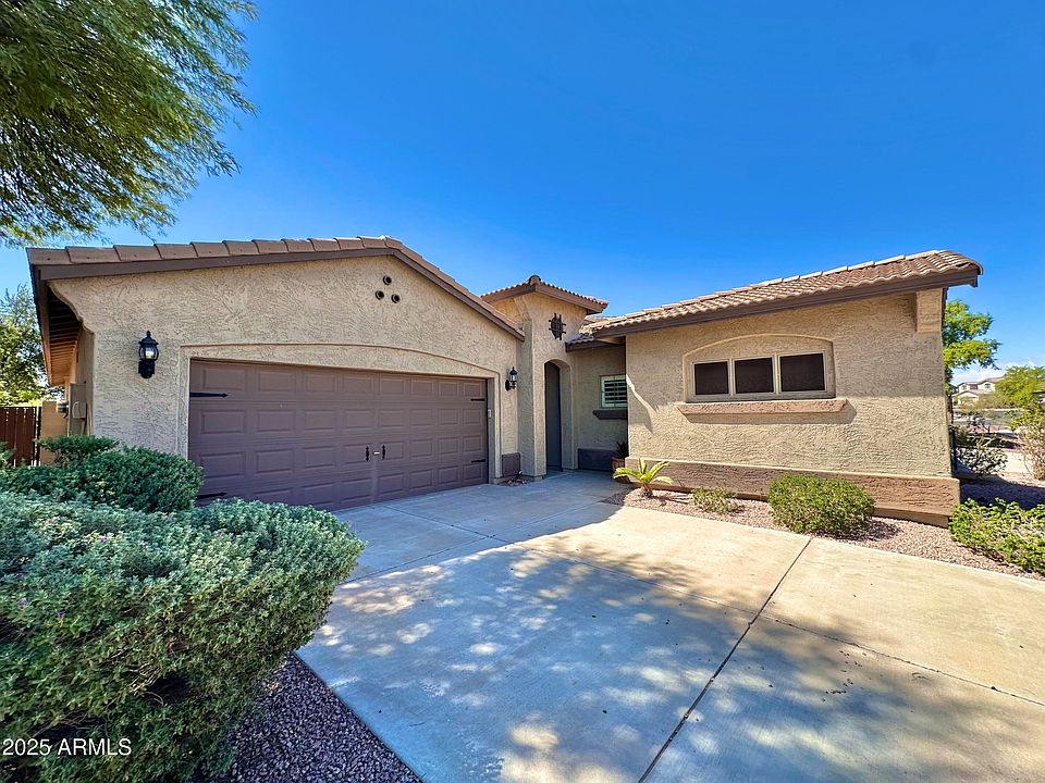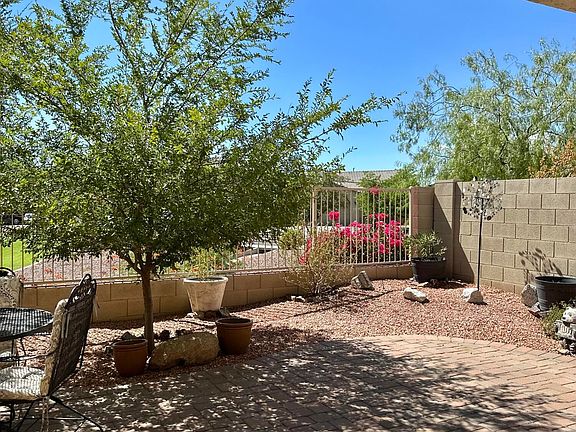 UPDATED HVAC! Beautiful 3-bed, 2-bath + den (Easy to make into a 4th bedroom) home in Desert Oasis of Surprise! Bright and open with tons of natural light, tile & shutters throughout. Spacious great room is perfect for relaxing or entertaining. The kitchen features stainless steel appliances, wall ovens, wood cabinetry, walk-in pantry, and 2-tier breakfast bar. Primary suite includes separate tub/shower & walk-in closet that enters into Laundry Room. Enjoy the private backyard with covered patio, extended pavers, and view fence—no rear neighbors! Watch the beautiful sunsets and the kids playing at the park. The 2-car garage has great storage. This home is move-in ready! Great location near parks, trails, and schools. Don't miss this one—schedule a tour today!