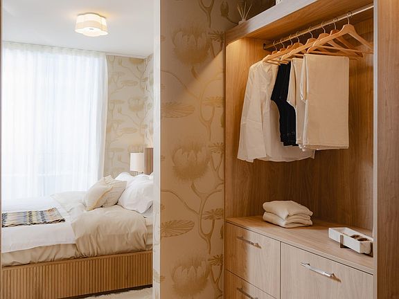 Quartz countertopsExpansive hardwood floorsPrivate west-facing patioNatural gas connectionKing-sized primary suiteEnsuite with double sinksShower and heated floors