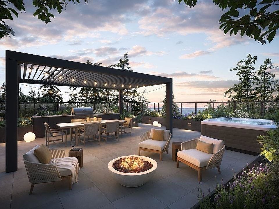 Discover luxury living atop the acclaimed ROCKFORD by Cressey in Ocean Park. Be the first to live in Penthouse 407, featuring 2 bedrooms, 2.5 bathrooms plus den. Loftly 10-foot ceilings enhance open floor plan with floor-to-ceiling windows and beautiful oak hardwood floors. Chef's kitchen offers integrated Italian appliance package, gas range, family-sized island and custom finished oak cabinets. King Size primary bedroom complete with custom closets, and leads to beautiful ensuite with double sinks, frameless glass shower and soaker tub. Enjoy summer entertaining on your private rooftop terrace complete with built-in grill and outdoor kitchen. Residents enjoy access to fitness centre, social lounge, Nordic Spa with sauna and cold plunge. Private 2-car garage. Make it yours today!