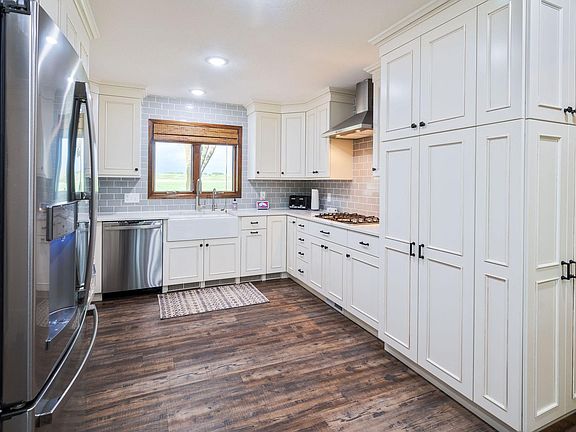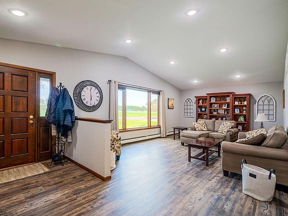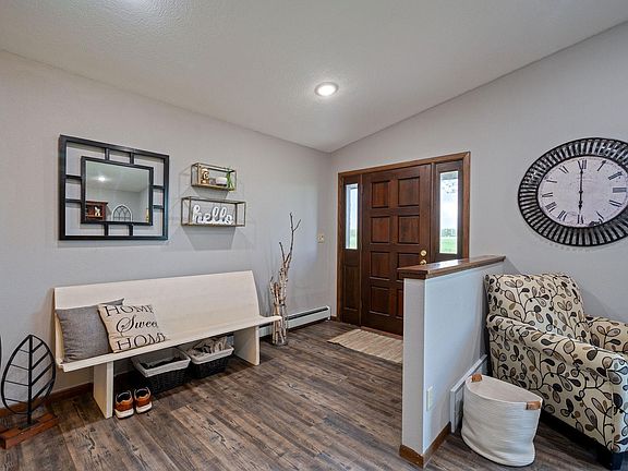 This is an incredible home and property on the edge of town. Beautifully maintained 4 bedroom, 3 bath, multi-level home. The attached double garage is finished and heated. Enter into a sizeable foyer from the front patio. The living room is very inviting with vaulted ceiling and new lighting. The gorgeous kitchen was updated in 2020 with quartz counter tops and other custom products. The dining area can hold a sizable table. Off the dining room is a very cozy 4 season sun porch with in-floor heat. Upstairs are 3 spacious bedrooms and a full bath. The lower level has a bedroom, laundry area, and full bath. You will also find a family room with a great gas fireplace, and an office area. The basement has a workshop, storage room, exercise room and utility areas. Enjoy your attractive front porch or your patio off the sunroom for relaxing alone or with family and friends.