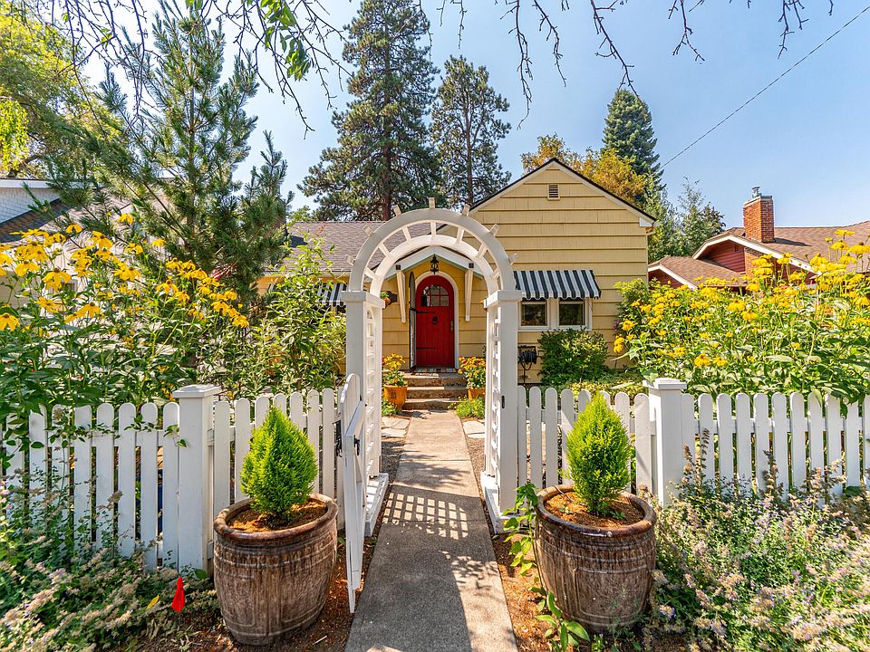 Step back in time to this lovingly restored original 1930s mill house located on a quiet tree lined street near First Street rapids, just blocks to downtown. A quintessential cottage with white picket fence & arched front door, this beautiful home is reminiscent of an English cottage but in the heart of Bend. Upon entry, you'll be greeted by authentic mill work from the Shevlin-Hixon Mill. Original french doors transport you to the dining room with a corner built in that will melt your vintage heart. The completely restored kitchen with original footprint & Julia Child style peg board will channel your inner chef. The mudroom/shelf lined pantry leads from kitchen to backyard, great for Bend winters. Cozy up in front of the antique birdseye maple mantle & gas fireplace in the living room. The anglophile in you will love the front & rear gardens connected by a meandering path. The remodeled basement is the perfect bonus space. A 1932 classic blending vintage charm & modern convenience.