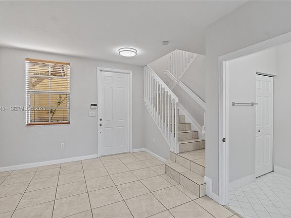 Welcome to your turn-key home at Villas at Carmel!! Features quality renovations, new kitchen appliances and recently renovated patio with pavers throughout . Tile throughout the home, blinds, fenced patio, accordion shutters on second floor with panel shutters on first floor. Lots of natural light peers through the windows during the day, making for beautiful illumination inside with principal room with view to a lagoon and garden. HOA includes a fantastic clubhouse with excellent gym, large pool, jacuzzi ,which currently are being renovated. It also offers a large space for owners to rent out for parties and events. Security patrol continuously guards the property. Ample parking in front of unit allows for seamless hosting. Next to Baptist Hospital, access to Florida Turnpike , Krome Avenue and near the Keys. Dont miss the opportunity!!