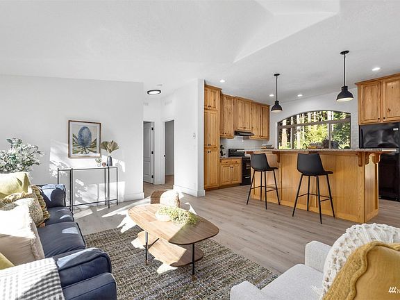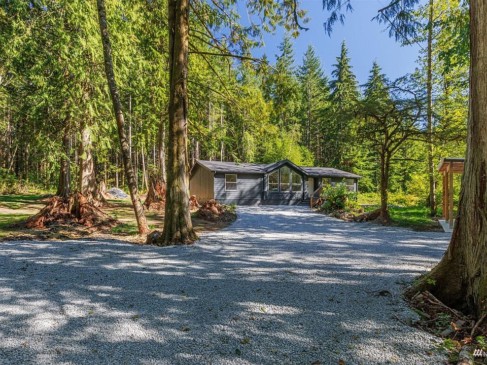 Welcome to your new home, located in Alger with quick & easy access to I-5, just 15 minutes to either Burlington or Bellingham. Entering through the gates and down the freshly graveled drive, your home is set in the back of the lot for optimal privacy. Surrounded by tall evergreens, the 1.38 acre lot is filled with dappled sunlight, w/ an equal mix of open & wooded space. Step inside, and you'll immediately feel the airy quiet that comes with living at this sanctuary. Tall ceilings and big windows fill the home with light, where you're immediately drawn to the updated, spacious & open kitchen. The home also features a large primary bedroom w/ walk-in closet and full bathroom, another full bath, two additional bedrooms, A/C & laundry room.