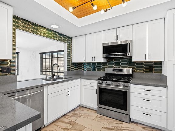 The whole package!! Assumable conventional loan option is now offered! Current monthly mortgage is $2,073.10 at an interest rate of 4.375%. This single-story 3-bedroom home is situated on a large corner lot at over 10,000 SF. NO HOA, fully enclosed backyard, 3-car garage, vaulted ceilings, RV parking, and it's all about location-location-location! Literally, just minutes away from Harry Reid International Airport, the Las Vegas Strip, UOG, shopping, medical care, and everything else to make your life as convenient and fun as possible. The tastefully upgraded kitchen and bathrooms give this home style and comfort that you'll greatly appreciate. Book a tour of this property today before it's gone.