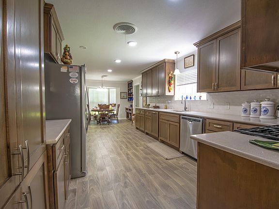 Welcome to this stunning 4 bed, 3.5 bath home on over 3 acres in Alvin, Texas! Boasting 3,200+ sq ft, this beautifully remodeled gem features a brand-new kitchen with new appliances, wood-like flooring, and a large laundry room with sink and half bath. The open-concept living room includes a wood-burning fireplace and custom-built display case honoring its first owner, Nolan Ryan. Enjoy formal dining, a formal den, and a sunroom perfect for relaxing. Recent updates include a new roof, AC, water heater, PEX plumbing, and appliances. The backyard offers large oak trees, a patio, fenced yard, and a spacious shop with 2 awnings—great for storage or workspace. A double-wide driveway and extra parking provide room for all your vehicles and equipment. Modern comfort meets timeless charm in this incredible property—don’t miss it!