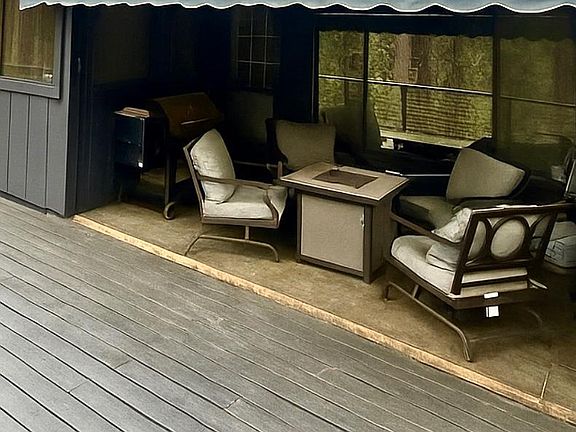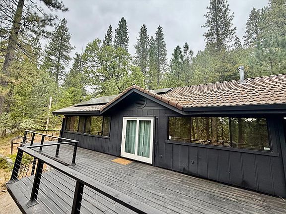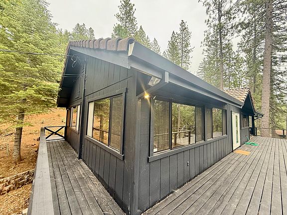 Looking for a large modern cabin with privacy and lake access in Arnold? Look no farther than fully furnished and spacious 3-bedroom, 2-bathroom home with a completely paid off solar system features modern updates and a peaceful setting. Nestled back from the main road, this property offers exceptional serene views of the surrounding tree canopy. Inside, you'll find generously sized bedrooms, a large kitchen, and expansive living and family rooms perfect for gatherings. Enjoy cozy evenings with a wood-burning stove and a second fireplace insert. Central air ensures year-round comfort, and a backup generator provides added peace of mind. Outdoor living shines with a partially enclosed patio and a large front-facing deck ideal for relaxing or entertaining while soaking in the natural beauty. A garage adds convenience and additional storage.
