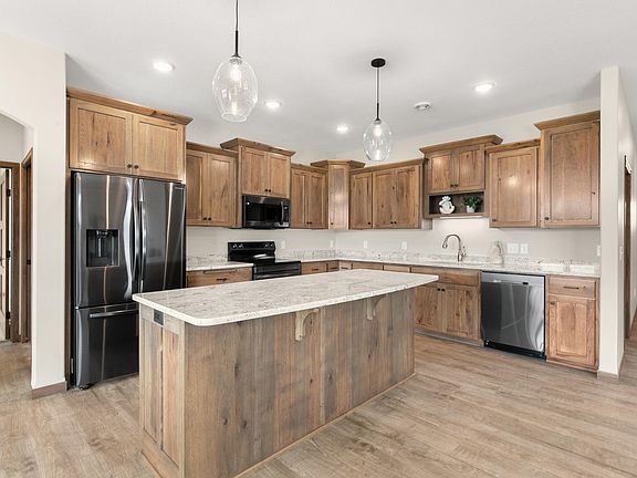 3 BR, 2 BA patio home built by Woodland Homes. 9' ceilings, 36" interior doors, beautiful custom Hickory Kitchen cabinets, granite kitchen countertops, large walk-in pantry, electric fireplace with stone surround, Owner's suite with tile roll-in shower, dual sinks & walk-in closet, Mudroom/Laundry with walk-in closet that duals as a safe room, Covered front porch and rear covered patio, Forced-air plus zoned in-floor heat. Attached 3-stall garage with additional 12'x12' flexible use storage space. You can relax while the association manages your lawn care and snow removal!