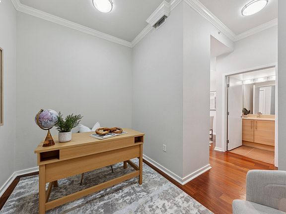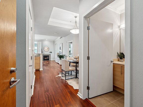 A perfect 10! Stunning top-floor Mercer condo in prime Downtown WC location close to fabulous shops & restaurants, Lesher Center for the Arts and two blocks from Walnut Creek BART. This 1 bedroom, 1.5 bathroom condominium with spacious den/office boasts a large layout, walnut color wood floors and 12' ceilings. The gourmet kitchen features Subzero and Bosch stainless steel appliances including a new gas range, granite countertops and soft close cabinetry. The living room is appointed with a gas fireplace, crown molding, custom shutters, eat-in bar and balcony access overlooking the pool. There is a separate large dining area, perfect for entertaining guests. The primary bedroom has been upgraded with new plush carpet and the bathroom has dual sinks and both a large tub and separate shower stall. The closets have been updated with custom organization from California closets. There is also an additional storage unit just down the hall from the unit. Amenities include gated parking, elevator, clubhouse, pool, gym & spa not to mention Starbucks, Nail Spa and The Little Pear just outside the entrance.