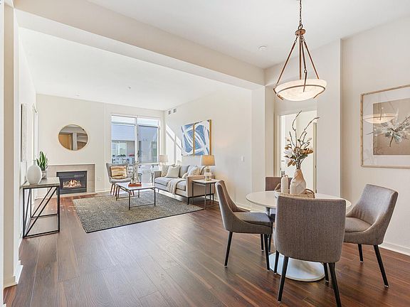 Luxury and convenience meet in this top-floor Mercer condo in the heart of downtown Walnut Creek. With 2 bedrooms and 2 baths across a spacious open layout, this home is filled with natural light through floor-to-ceiling windows and enhanced by higher ceilings exclusive to the 4th floor, modern flooring, and fresh paint. The gourmet kitchen features Sub-Zero and Bosch appliances, stone countertops, and a breakfast bar, flowing seamlessly into the dining and living areas. The primary suite offers a walk-in closet and a spa-inspired bathroom with double vanity, soaking tub, and separate shower. The second bedroom and full bath are ideal for guests, a home office, or both, while the laundry room with side-by-side washer/dryer and cabinetry adds everyday convenience. Step outside to a covered patio overlooking the courtyard, or enjoy resort-style amenities including a pool, spa, gym, clubhouse, and BBQ area. Two side-by-side parking spaces and a storage unit complete the package. All of this just minutes from BART, freeway access, Broadway Plaza shopping, and Walnut Creek’s top dining and cultural destinations. Photos were taken when the home was professionally staged and may not reflect the home’s current appearance.