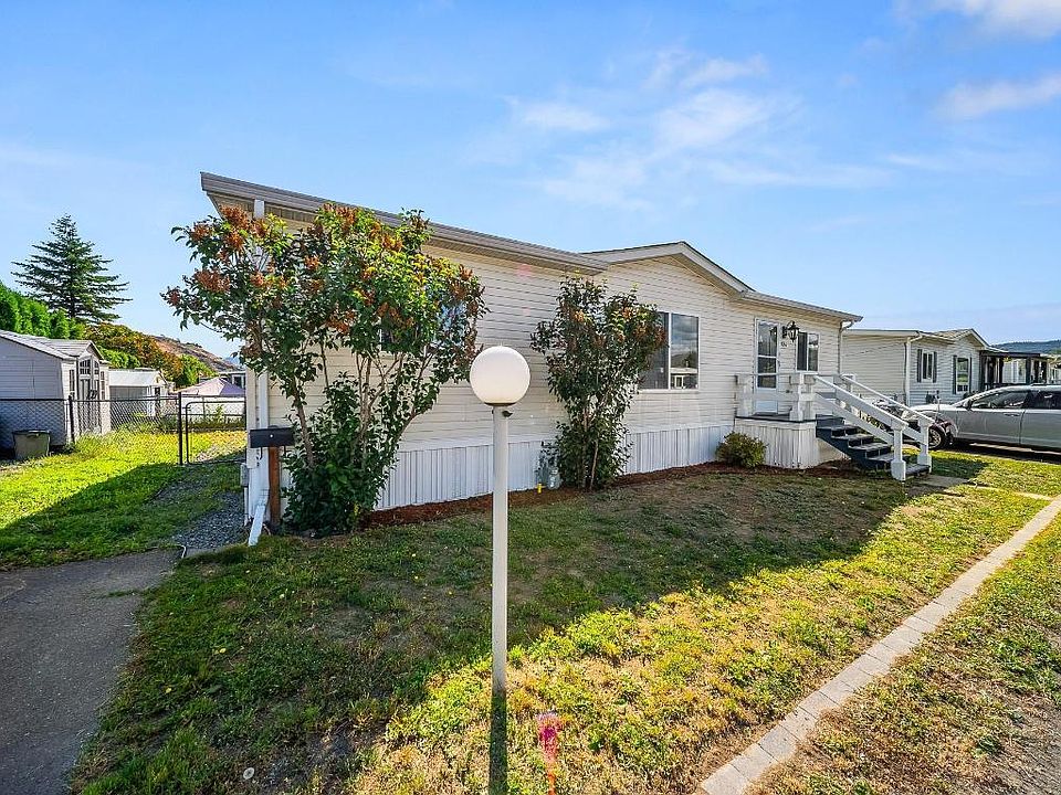 Well-Maintained Home in Central Location! Located in a desirable, centrally located park, this 44’ x 24’ manufactured home offers spacious, open-concept living with 3 bedrooms and 2 full bathrooms. The home has been lovingly cared for and is move-in ready. Enjoy the covered back deck—perfect for relaxing or entertaining. The fully fenced yard offers privacy and room to enjoy the outdoors, plus there’s a large storage shed for added convenience. Parking is a breeze with two spots on a concrete pad and additional parallel parking out front. The park allows for one dog or cat under 13 inches tall, making it a pet-friendly option for small companions. 6 year old roof. Don’t miss this opportunity to own a clean, comfortable home in a well-kept community!