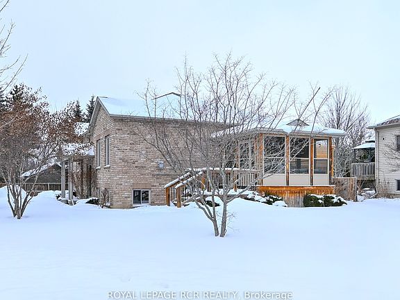 Welcome to this beautifully maintained all brick raised bungalow located in the highly desirable beach area of Lake Simcoe. Set on a level, treed 54.98 x 161.75 ft lot, this home offers privacy and tranquil views overlooking protected green space. The main floor features 9 foot ceilings and a bright open concept living, dining and kitchen area, ideal for entertaining. The living room boasts hardwood floors, a gas fireplace and 2 large windows offering peaceful, private views. Two walkouts lead to a spacious deck and a 3 season sunroom, seamlessly extending your living and entertaining space outdoors. This home offers 3 bedrooms, including a spacious primary bedroom with a closet and private ensuite. Two additional generously sized bedrooms are serviced by a 4 piece main bathroom, making this layout perfect for families and guests. The unspoiled basement features 9 ft ceilings, above grade windows and a rough-in for a bathroom, offering excellent potential for an in-law suite or additional living space. Additional highlights include a heated double car garage, double driveway and a location just minutes from beaches, marina, shopping and Highway 400.
