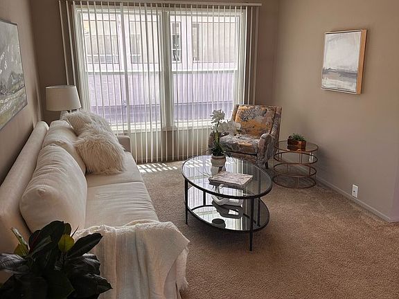 One bedroom apartment on the top floor located near downtown San Carlos and walking distance from Cal Train. This unit is staged - furniture not included! Features Include: Carpeted throughout Bright spacious living room with crown molding Updated tile counter tops and tile floor in the kitchen Kitchen complete with: gas stove, refrigerator, and ample cabinet space Bedroom has large closet Full bathroom with bathtub / shower Water and garbage included Coin operated laundry on-site Renter's insurance required STREET PARKING ONLY Sorry no pets Available Now