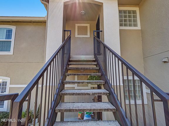 Spacious 2 bedroom 2 bathroom second floor condo in the Palms of Marsh Landing. Tile and wood floors throughout the home, beautiful primary bathroom with huge walk in shower and designer vanity. Primary bedroom opens to glass enclosed Florida Room. Second bedroom has direct access to bathroom creating a second suite. Palms at Marsh Landing features a clubhouse with fitness center, two pools and tennis courts. Great location at the end of JTB and only a couple minutes from the beach. No pets please for this home that is available now. We have a strict no smoking or vaping are permitted in or on the property.