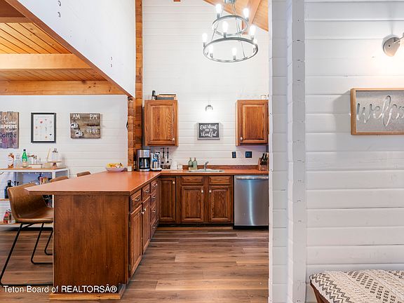 Within the serene community of Rafter J, this tastefully remodeled townhouse blends modern comfort and tranquil surroundings. This bright residence exudes an inviting ambiance, ensuring peace and quiet as well as convenience to town amenities. Stepping through the backdoor on to the deck and then the common area, you will enjoy views of a tranquil pond set against the backdrop of The Grand Teton. Inside, discover many upgrades including fresh flooring, new appliances, and custom tile work in the bathrooms, enhancing both style and functionality. The loft presents a versatile space, ideal for a home office or simply unwinding in comfort. Whether you envision this property as your Jackson Hole sanctuary, a rental venture, or a real estate investment, it offers possibilities.