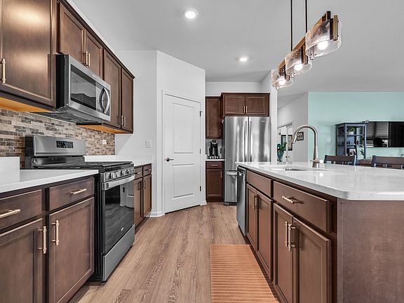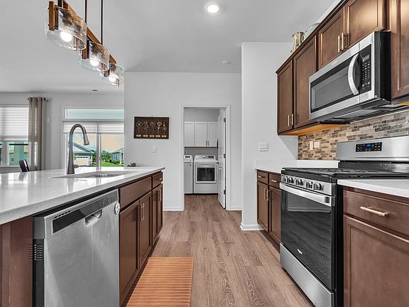 WELCOME HOME TO RESORT-STYLE LIVING! DISCOVER THE PERFECT BLEND OF ELEGANCE, COMFORT, AND CONVENIENCE IN THIS BEAUTIFULLY UPGRADED 2-BEDROOM, 2-BATHROOM HOME WITH A VERSATILE DEN, LOCATED IN A VIBRANT 55+ ACTIVE ADULT COMMUNITY OFFERING A TRULY MAINTENANCE-FREE LIFESTYLE. STEP INSIDE TO 9-FOOT CEILINGS AND AN OPEN-CONCEPT FLOOR PLAN THAT ENHANCES NATURAL LIGHT AND FLOW THROUGHOUT THE HOME. THE GOURMET KITCHEN IS A STANDOUT, FEATURING RICH ESPRESSO CABINETRY, WHITE QUARTZ COUNTERTOPS, A GLASS TILE BACKSPLASH, STAINLESS STEEL APPLIANCES, AND AN OVERSIZED ISLAND WITH A BREAKFAST BAR-IDEAL FOR CASUAL DINING AND ENTERTAINING.THE SPACIOUS GREAT ROOM IS PERFECT FOR EVERYDAY LIVING AND GATHERINGS, HIGHLIGHTED BY LUXURY VINYL FLOORING AND DESIGNER LIGHTING THAT ADD A TOUCH OF SOPHISTICATION. THE PRIMARY SUITE IS A PRIVATE RETREAT, OFFERING PLUSH CARPETING, A SPA-LIKE EN SUITE WITH DUAL VANITIES, QUARTZ COUNTERTOPS, A WALK-IN LUXURY SHOWER, A LARGE WALK-IN CLOSET, AND AN ADDITIONAL CLOSET. THE GENEROUSLY SIZED SECOND BEDROOM IS PERFECT FOR GUESTS OR HOBBIES AND IS CONVENIENTLY LOCATED NEAR A FULL HALL BATH. THE DEN OFFERS FLEXIBILITY FOR A HOME OFFICE, READING NOOK, OR CRAFT SPACE. ENJOY YOUR PRIVATE PATIO THAT OPENS TO LUSH GREEN SPACE-IDEAL FOR RELAXING EVENINGS OR SUMMER BBQS. THIS AMENITY-RICH COMMUNITY OFFERS A DYNAMIC LIFESTYLE WITH ACCESS TO SOCIAL EVENTS, A STATE-OF-THE-ART FITNESS CENTER, INDOOR AND OUTDOOR SWIMMING POOLS, PICKLEBALL, TENNIS, GOLF, AND MORE-ALL JUST STEPS FROM YOUR DOOR. DON'T MISS THIS OPPORTUNITY TO LIVE THE LIFESTYLE YOU DESERVE-SCHEDULE YOUR PRIVATE SHOWING TODAY!