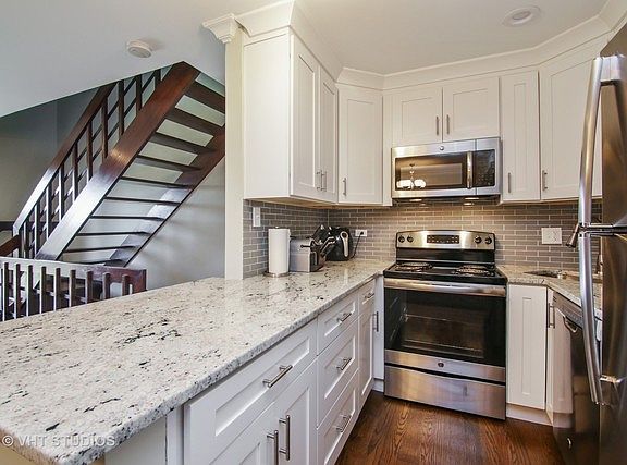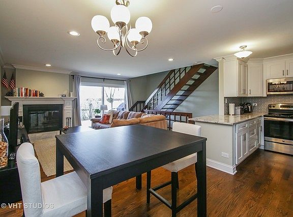 Prepare to be impressed! Current owners hate to leave this beautiful townhome - everything has been redone to perfection! Open concept 1st floor with custom, wood burning fireplace, crown molding and sliders to the patio. Stylish half bath off of Foyer. Kitchen has white shaker cabinets, granite counters and stainless steel appliances. New gleaming, hardwood floors on both levels. 2 bedrooms upstairs share a deluxe bath with soaking tub and double, granite vanity. 2nd floor laundry with new Samsung washer/dryer. Basement has a terrific, carpeted Family Room. There is an attached garage with storage. HVAC, H2O & hard wired smoke detectors are new also. Dynamic location close to shopping & transportation. Nothing to do but move in and enjoy! Plenty of guest parking for all your friends!