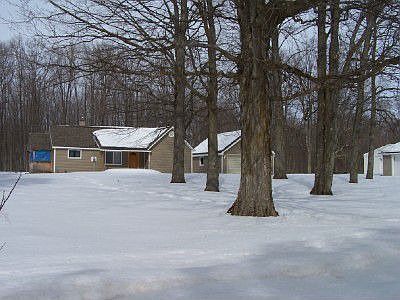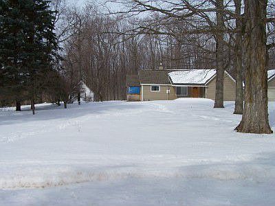 Nice wooded lot with cozy, cute home with 2 outbuildings and three garages. 1 car garage next to home is 16 x 20, 2nd garage/pole building is 24 x 24, 3rd pole building is 24 x 40. Close to 1000's of acre of state land, great starter home for hobbyist.