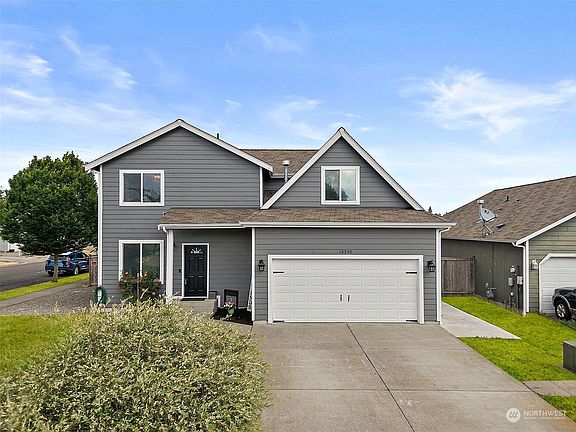 Meticulously maintained & move-in ready! Stunning Mt Rainier views from front of home. Bay window graces dining nook in open concept living space. Large peninsular counter w/undermount sink. Granite counters; stainless appliances; recessed lighting; ceiling fans. Bonus: Office on main floor. Laundry is conveniently located near two guest bdrms (w/full bath) & Primary Suite, finished w/private bath & walk-in closet. Bring your landscaping dreams to life on over-sized corner lot w/fully fenced back yard and RV or boat parking. Enjoy outdoor grilling on wide patio, partially covered. Skip the main hwy traffic by taking back roads. Easy access to JBLM, Olympia, & I5. Close to schools, shopping, & entertainment. Oh, & did we mention no HOA?!