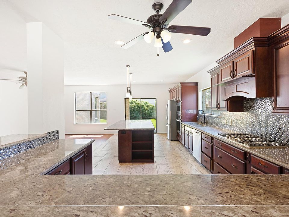 Welcome to 16551 Cypress Bridge Drive, an expansive 6 BEDROOM 4 FULL BATH home with over 4,000 sq. ft. designed to maximize space and comfort. Freshly painted throughout, this desirable CORNER LOT property offers a smart layout with TWO DOWNSTAIRS BEDROOMS including the primary suite, a private office, formal dining room, and 2 UPSTAIRS LIVING AREAS that provide endless flexibility for entertaining or relaxation. The expansive remodeled kitchen is both stylish and functional, and the home comes fully equipped with a TANKLESS WATER HEATER, smart door lock, pre-wired alarm system, and all appliances—including washer, dryer, and 3 FRIDGES INCLUDED. Just a short walk to schools, a scenic pond, jogging trails, and minutes from popular eateries, this home combines size, convenience, and lifestyle in one incredible package. Don't miss out, schedule your tour today!