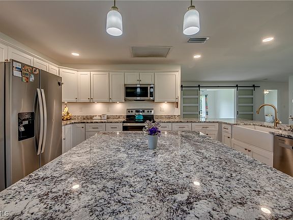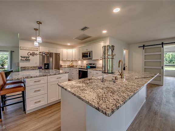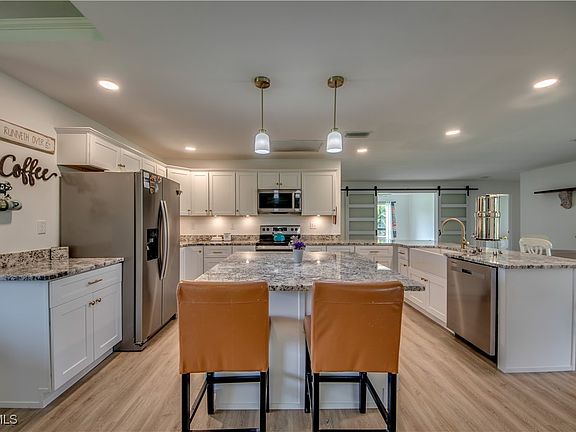 Get ready, because this one is a total TRIFECTA — LOCATION, LIFESTYLE & LUXURY wrapped up in an actually affordable package! This beautifully remodeled 4-bedroom home delivers that light-filled, wide-open floorplan everyone dreams about. The kitchen is pure delight… a gorgeous granite prep-island that doubles as the family gathering hub, farmhouse sink, soft-close base cabinets, crown molding and stainless-steel appliances (2023). It’s the heart of the home and perfectly positioned so you can chat with guests in the great room while whipping up dinner. Hosting? Easy. Weeknight living? Even easier. Your primary suite is a true retreat with a freshly remodeled bathroom (2024), beautiful finishes and spacious walk-in closet. The split bedroom design places three extra-generous bedrooms on the opposite side of the home. The fourth bedroom, dressed with charming barn doors and its own walk-in closet, makes a fantastic flex space—home office, den, playroom … you decide. Did we mention the NEW 2024 DIMENSIONAL SHINGLE ROOF? The oversized lanai overlooks a big, beautiful private backyard with lush green views. The home is filled with natural light thanks to several NEW IMPACT GLASS WINDOWS (excluding 4th bedroom, dining, and sliders). Sitting on almost a half-acre lot at the edge of the golf course, this home offers peaceful green views and neutral colors throughout, making it easy to bring in your own personal style. There’s plenty of space for gardening, lounging, grilling, or simply sipping your morning coffee while enjoying the sunshine and the quiet backdrop of nature. Welcome to The Forest, an enchanting country club community tucked into the tropical beauty of South Fort Myers. Here, YOU choose your lifestyle. Membership is completely OPTIONAL—pick unlimited golf, executive, sports, or none at all. The lowest HOA fee is an appealing $2,914 per year. Amenities? Oh, they’ve got plenty: 36 holes of golf, practice facilities, clubhouse dining, social events, tennis, pickleball, fitness center, bocce, and more. Use it all or just what you love… the beauty is in the flexibility. It’s the kind of place where neighbors wave, golf carts cruise at sunset, and every day feels just a little more relaxed. BONUS: The seller offers an assumable flood insurance policy for primary occupancy at a very attractive $2,404 per year. LOW HOA. NOT a 55+ community. Just easy, flexible living in one of the best pockets of Southwest Florida. And let’s talk about South Fort Myers — people LOVE it here. Gorgeous beaches, warm Gulf breezes, and that laid-back Florida lifestyle that feels like you’re on vacation every day. Boating, fishing, kayaking, and water sports at your fingertips. Lush parks, golf courses, dining, shopping, and cultural attractions round out the fun. Great schools and a friendly, welcoming vibe make this an ideal location for families, seasonal residents, and year-round sunseekers. The TRIFECTA is real, it’s here, and it’s calling your name—don’t miss it.