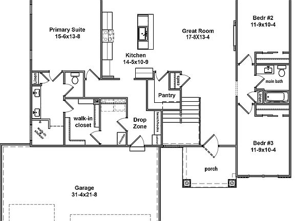 Modern farm house accentsAmple linen closetsGenerous primary suite closetOpen conceptSecluded primary suiteLvp flooringTiled walk-in shower