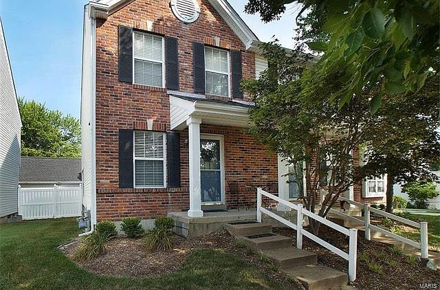 Charming 2BR townhome in a wonderful community. You'll enjoy living in this cozy end unit that has spacious open floor plan. Family room has a brick surround fireplace and the room provides abundant light with its numerous windows. Main level includes family room, dining area, kitchen with 42 inch cabinets, appliances and powder room. Upper level features 2 spacious bedrooms with vaulted ceilings and each having its own full bath. Lower level has some drywall, some carpet, 2 closets, washer/dryer hookup and plenty of room for storage. There is a deck off the living room leading to the private and fenced courtyard/backyard and the 2-car garage. Neighborhood amenities include 2 pools, tennis and basketball courts, playground, fishing ponds and nearby walking and biking paths. Choice Wildwood location within walking distance to the Wildwood Towne Center for shopping, dining or a movie. AAA-rated Rockwood Schools.