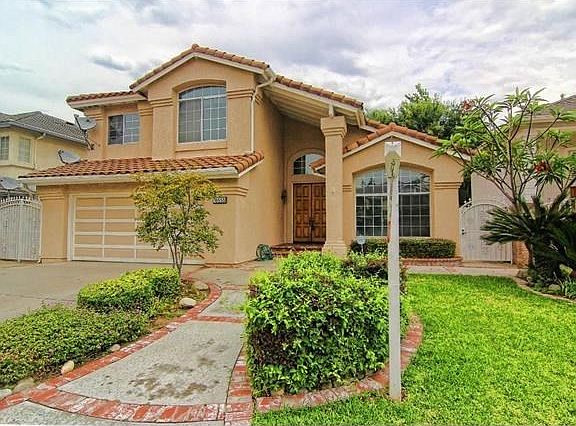 Beautiful Hillsborough " MANOR " home, professional landscaping w/brick, open floor plan, large lot size, double panel windows. hardwood floor in kitchen and family room, recessed lighting, breakfast nook in kitchen, spiral stairs, double door in master bedroom, sky light, w/walking closet in master bedroom, covered patio, red tile roof, open floor plan w/ mini wet bar,and cozy fireplace in family room, vaulted ceiling living room and dining room, new paint inside Assoc. pool, spa, club house, close to park, golf course much more !!