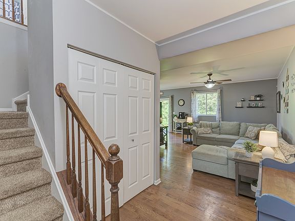 Step inside to discover beautiful hardwood floors flowing throughout the first floor, creating a warm and inviting atmosphere. The spacious living areas are thoughtfully laid out. The kitchen features white cabinetry, ample counter space, and updated stainless-steel appliances, while the recently redone pantry-with new shelving and closet doors-adds an extra touch of convenience. A powder room completes the first floor. Upstairs, a bright and airy loft with hardwood floors and wainscoting provides the perfect spot for a TV room, reading nook, or home office. All three bedrooms are generously sized with ample closet space, including the primary suite with a ceiling fan with light, and large walk-in closet. The finished basement offers even more living space with a cozy rec room that also serves as an office area. Additional highlights include abundant storage, a newer washer and dryer, and a newer water heater. The attached two-car garage is equipped with a newer door opener featuring app connectivity, while the roof was recently replaced by the HOA with no special assessment. HOA dues of $205 per month and includes exterior maintenance, common insurance, lawn care, and snow removal.