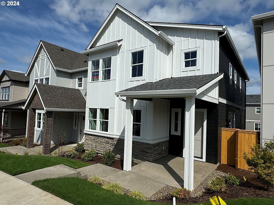 Move-in-Ready for September! Driveway too! You will love the Eclectic white upgraded cabinets seen in home photo 2. Join our latest community Axiom by New Home Co. and experience the charming main street living in the coveted River Terrace Master Plan community. Farmhouse exterior with spacious front porch for morning coffees! This four-bedroom open floorplan boasts 10-foot ceilings, Lage Bonus room on Main floor perfect for game/rec room, movie theater or hobby of your liking. Abundant windows flood the space with natural light, highlighting the expansive living and dining space perfect for hosting dinners and parties. Enjoy soaking in your tub in the spa like primary bath! Come explore our new community and town center. Enjoy a suburban setting with urban energy that includes over 25,000 sq. ft. of retail and recreation spaces including a town center, walking paths, dog park and more! Come tour today with an on-site representative! Be a part of our vibrant neighborhood today!
