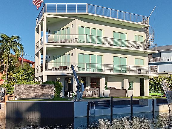 Experience the ultimate Island living with breathtaking Bay views, world-class boating, and a laid-back island vibe create the perfect escape .This stunning three-story,4- bedroom,3 1/2 bathroom custom built offers luxury and comfort, designed for those who appreciate waterfront living at its finest. This home rents for $10,000 a month for a 1-year lease. Home may also be available for shorter time lease rental for $12,000 monthly. Call owner for details on rental. Newer Waterfront Home with beautiful views of the Bay. Roof Top Sun Deck, Spool, built-in barbecue with sink and Bar, and an outdoor fridge. Secure gated private parking for your car under your home. Park your boat behind your house on a 17,000-lb elevator boat lift.No traffic street being that is at the end of the cul-de-sac . The best restaurants are within walking distance, Bicycle sidewalks are one block away, Marina with a Boat ramp is only a 1/2 mile away at the famous John Penny Camp. Feel like you're at a resort in the comfort of your home. Safety and efficiency are paramount, with impact windows/doors throughout the home and a solid concrete roof and walls. The house has EXTERIOR CAMERAS for the security of the property and our guests .Small dogs are considered on a case-by-case basis. Call owner for details at SUN-865-TOGO
