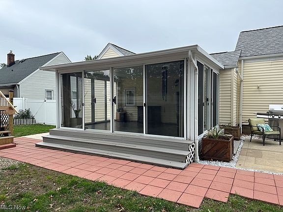Say hello to this adorable 3 bed, 1 bath bungalow in Wickliffe. Cute kitchen with all appliances staying. Dining area off the kitchen with slider to an attached enclosed patio area which has sliders on all exterior walls so you can open up and enjoy the summer and fall breezes. Another patio of the enclosure, above ground pool with a newer deck and a shed for additional storage. The backyard is fenced in for privacy. Large room off the dining room to be used as the owners suite or a family room. Two additional bedrooms and living room on the first floor. The upstairs is unfinished.