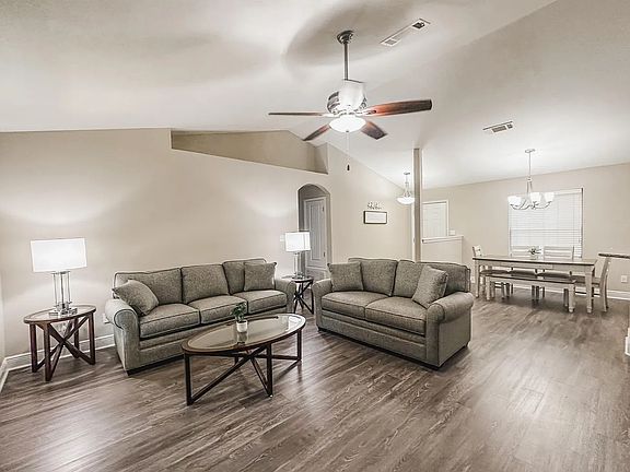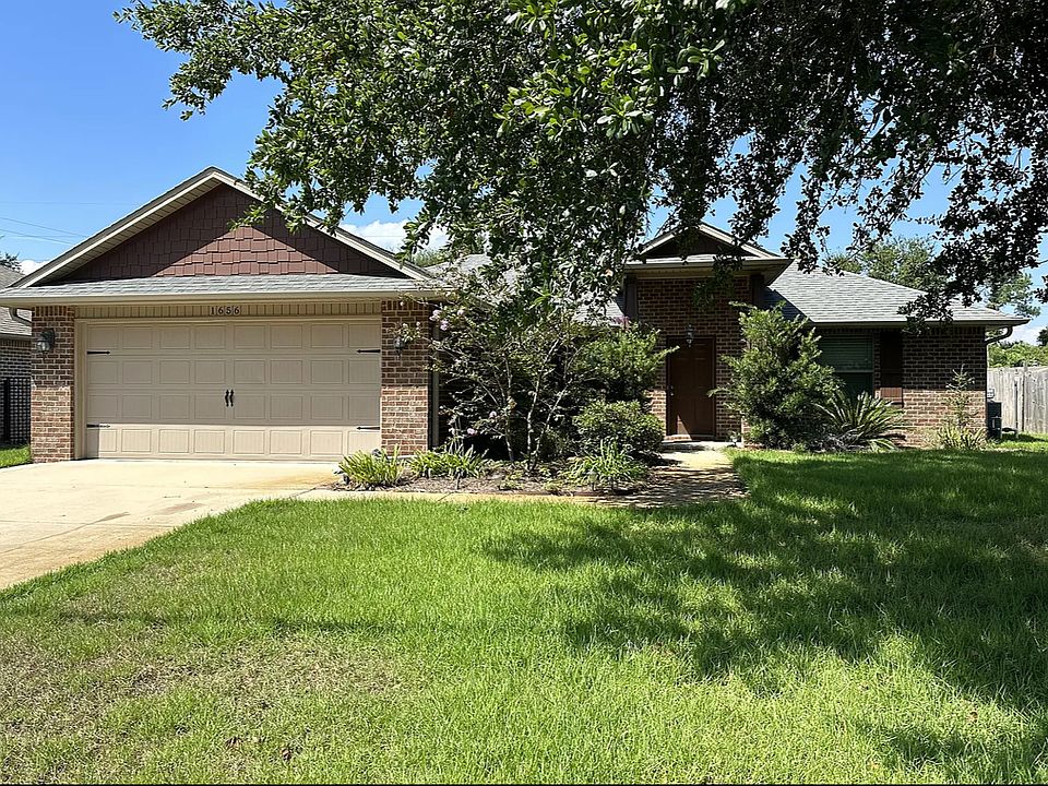 This house is Unfurnished this meticulously maintained brick home offers an array of desirable features both inside and out. The exterior boasts a charming all-brick construction, ensuring durability and timeless appeal. The fenced backyard provides privacy and security for your loved ones, while the added hurricane protection offers peace of mind during stormy seasons. Additionally, the property is equipped with a convenient sprinkler system, making lawn maintenance a breeze. Step inside to discover a stunning interior that perfectly complements the inviting exterior. The cathedral ceilings create a sense of spaciousness, while the open and split bedroom floor plan offers flexibility and privacy. The neutral color palette throughout the home creates a blank canvas for your personal touch, and ample natural light illuminates every room. The kitchen is a chef's delight, featuring sleek granite countertops, a breakfast bar, stainless steel appliances, and a pantry for all your storage needs. Adjacent to the kitchen, you'll find a convenient laundry room, making household chores a breeze. The formal dining room provides an elegant space for entertaining guests. Escape to your own private oasis in the master suite, thoughtfully situated on the opposite side of the home from the other bedrooms and bath. The bright and cheery bedroom offers a tranquil retreat overlooking the backyard. The master bathroom boasts a double vanity, two walk-in closets, and a spacious shower, creating a luxurious experience. The highlight of this property is the enormous backyard, offering endless possibilities for outdoor activities and relaxation. Entertain friends and family on the open patio, enjoy the privacy provided by the surrounding fence. Convenience is at your doorstep, with the grocery store, shopping centers, restaurants, and the Tiger Point Golf Course just minutes away. Don't miss out on this incredible opportunity to make this house your home.